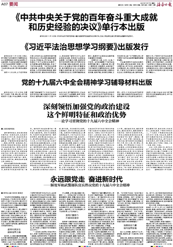 《中共中央关于党的百年奋斗重大成就和历史经验的决议》单行本出版