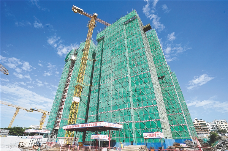 11月16日,三亚市天涯区西瓜、芒果片区棚户区改造二期项目6号楼封顶,是我省首个竖向构件全装配、全现浇建筑楼栋。 三亚市天涯区西瓜、芒果片区棚户区改造(二期)工程总建筑面积约26万平方米,将建设1所幼儿园、1所小学,安置千余户居民,是中铁建设推行装配式IRF体系的示范项目,也是海南首个竖向构件的全装配、全现浇的工程项目。 本报记者 武威 摄