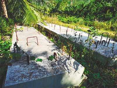 海南日报记者在祖关村内看到,4座便民桥选址分布在2公里长的水利渠上,采用桥墩、桥面分开浇筑,成型后再组装的施工工艺建设。目前,8个桥墩均已建好,提前浇筑好的桥面也已运至桥墩附近。“再花最多两天的时间,利用吊车将桥面吊到桥墩上进行组装,这4座桥就可以完工并投入使用。”陈大文称,但是村民盼了快一年,4座桥依旧处于停工状态,“为方便出行,村民在水利渠上搭建了几座简易木桥,但这存在安全隐患,且农用拖拉机、收割机根本无法通过。”