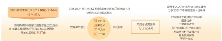 五指山市生态搬迁安置工程项目用地总面积约24.97亩,项目拟建4栋11层住宅楼及配套1层商业网点、2层的活动中心,结构形式为装配式结构,根据五指山市摸排的安置户家庭人口组成情况,安置房户型分为60平方米、90平方米、120平方米和150平方米4种,共160套。