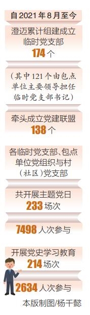 “对症下药破解堵点,是澄迈县对‘支部建在乡村振兴一线’工作的基础要求。”澄迈县委组织部相关负责人表示,同时,该县还把临时党支部纳入党建联盟结对共建活动范围,组建由临时党支部、包点单位党组织、村(社区、居)党组织和若干个职能服务挂钩单位党组织构成的乡村振兴“3+X”党建联盟,通过临时党支部责任联担、理论联学、活动联办、资源联享,充分发挥基层党支部的主体作用,把各方力量凝聚到破解乡村振兴的堵点和难题上来,合力打通阻碍乡村振兴的“任督二脉”。