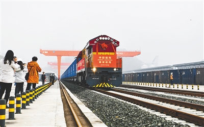 图为整列中欧班列从贵州铁投都拉营国际陆海通物流港发车。 新华社记者 杨文斌 摄