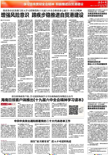 第002版:学习宣传贯彻全会精神 积极推进自贸港建设