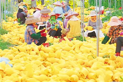 时下正值昌江黎族自治县海尾镇五大村蜜瓜上市季节,当地村民们忙着给蜜瓜套袋、装箱,准备运往内陆城市销售。