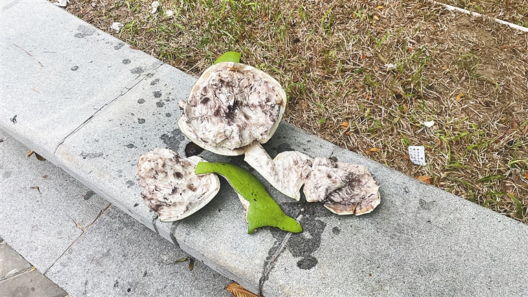 “这种树我以前在保亭见过,听说叫‘炮弹果’,能爆炸且爆炸的威力很大,我一直不敢靠近。”葫芦树旁,游客陈晓涵拿出手机边拍照边说,成熟的葫芦树果实碰到火会自动爆裂开,锋利而又坚硬的果实碎片四处飞射,甚至能把小鸟炸伤,这些果实碎片不仅威力大而且射程远。“最远能飞出二十多米,所以在果实成熟期,树周围会被围起来。”
