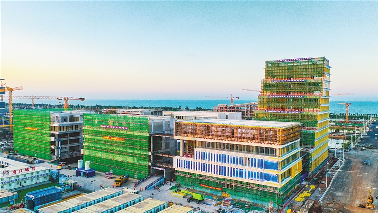 近日,海口江东新区的金融中心项目雏形初现。该项目预计明年1月可实现项目整体竣工。