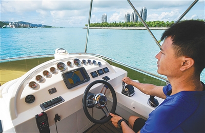 三亚市天涯区海坡村村民王丕明是三亚人社局组织开展的首期游艇驾驶员培训班学员。“祖祖辈辈靠打鱼为生,船就是我们的‘双脚’。”王丕明说,“洗脚上岸”后,他到超市、工地打过零工,收入不稳定,也总觉得不如在海上自在,“再次回到熟悉的海上,我有信心成为一名合格的游艇驾驶员。”