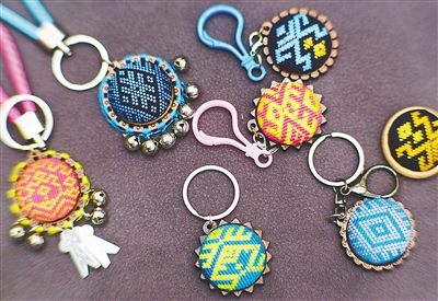 “钥匙挂件小巧实用,特别好卖。”黄慧琼多年的探索为她开拓市场积累了经验。在颁奖典礼现场,小小的钥匙挂件做工精美、色彩明艳,具有3000年历史的黎族纺染织绣技艺在方寸之间透露着织女们的巧思。