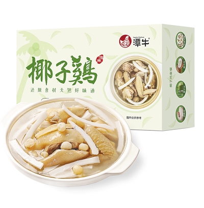 用椰汁代替日常火锅里的高汤或者白水,甜甜的椰汁和文昌鸡同煮,满嘴都是鲜甜。近年来,椰子鸡火锅在海南和广东风头无两,甚至有风靡全国的趋势,试与川式火锅、潮汕牛肉火锅、北京铜锅涮肉等在火锅赛道上一决高下。在海南,随处一家椰子鸡火锅都不会令人失望,但对于当地没有椰子和文昌鸡的吃货们来说,潭牛椰子鸡火锅套餐在盒马鲜生、沃尔玛等商超的出现,无疑是巨大的惊喜。