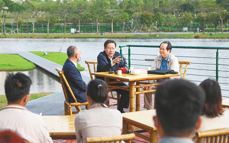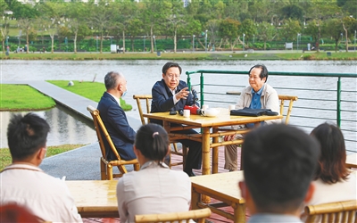 话筒在人群中传递,一个个载满期待的问题向王晓晖抛去——“我们该如何乘着海南自贸港建设的东风,把‘绿水青山’转化成‘金山银山’”“我们该如何处理好精神文明建设和自贸港建设的关系”……结合党的十九届六中全会精神,王晓晖一一作了回应。