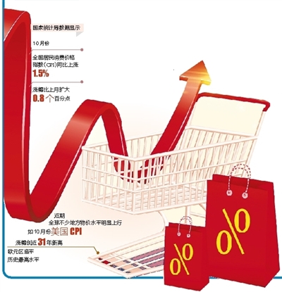国家统计局数据显示,10月份,全国居民消费价格指数(CPI)同比上涨1.5%,涨幅虽比上月扩大0.8个百分点,但仍低于宏观调控预期目标,消费市场供需基本平稳。