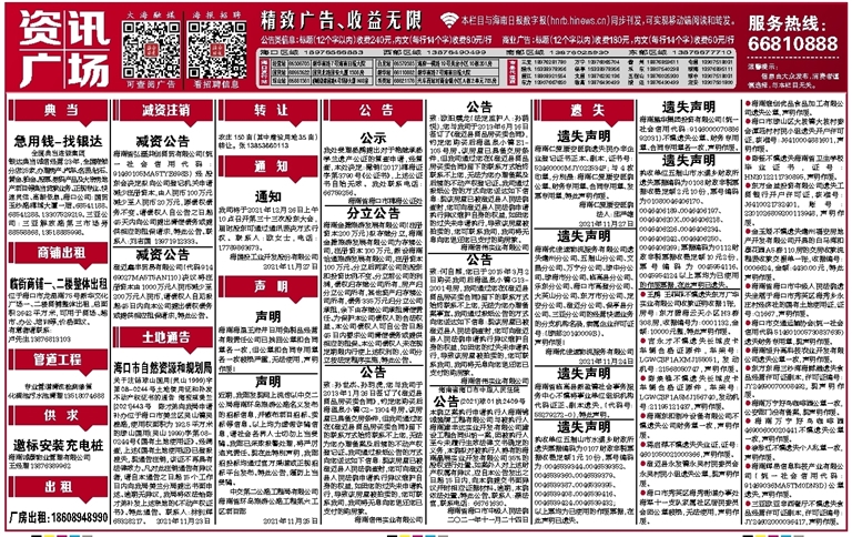 海南星华集团投资有限公司(统一社会信用代码:914600007088692031)不慎遗失公章、财务专用章、合同专用章各一枚,声明作废。