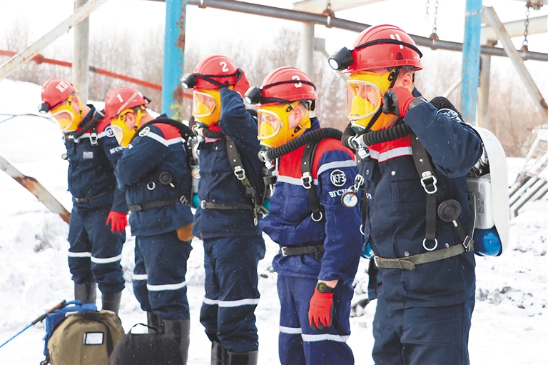 这张俄罗斯紧急情况部提供的照片显示,11月25日,救援人员准备在俄罗斯西伯利亚联邦区克麦罗沃州发生事故的矿井开展救援。