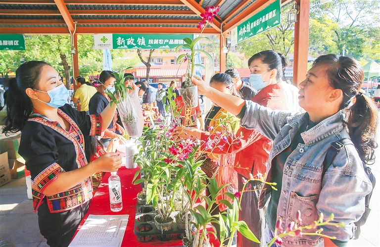 11月26日,居民在保亭黎族苗族自治县举办的消费助农大集市上选购兰花。