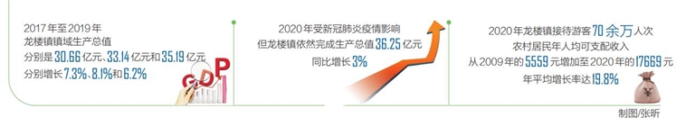 数据是有力的佐证:2017年至2019年,龙楼镇镇域生产总值分别是30.66亿元、33.14亿元和35.19亿元,分别增长7.3%、8.1%和6.2%;2020年受新冠肺炎疫情影响,但龙楼镇依然完成生产总值36.25亿元,同比增长3%。