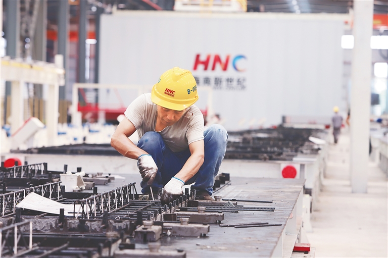 11月26日上午,定安净菜加工项目现场,到处都是忙碌的身影,即便头顶炎炎烈日,工人们绑扎钢筋的手速丝毫不减。