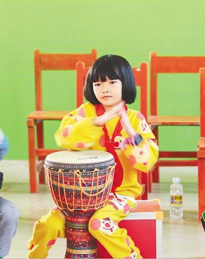 “跟着老师的节奏来,左手、右手、双手拍。”在义工老师的带领下,非洲鼓课堂开始了。孩子们虽然是第一次接触非洲鼓,但在认真听讲和学习之后,很快就熟悉了节拍,能够随着音乐一起拍出整齐的律动。