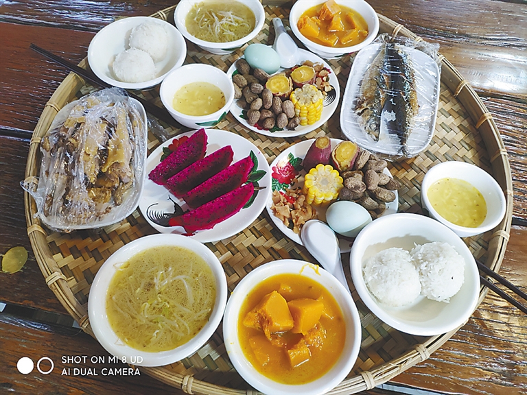 为了增加旅游吸引力,2021年10月1日,溪边村推出了颇具当地特色的旅游新产品——农家公道饭。吃公道饭是万宁北部地区的一种餐饮习俗。“公道饭,就是有钱出钱,没钱出力,比如四个人想吃一只鸭子,3个人出钱购买,没出钱的那个人就负责烹调,最后大家一起享用美味。”文盛飞说,在下雨天或晚上,当地村民常三五成群以这种方式聚餐。