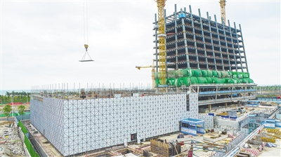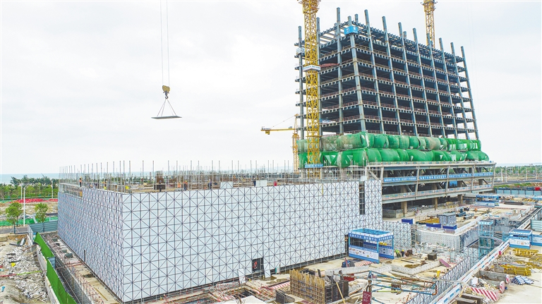近日,正在进行钢结构搭建和钢筋模板混凝土浇筑的中银项目海南总部。
