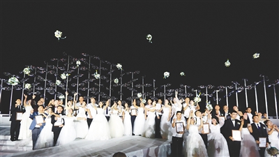 天涯海角国际婚庆节已经走过了25个年头,天涯海角游览区年均接待入园婚纱拍摄情侣约2万对。
