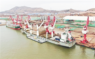 11月29日,中俄核能合作项目——徐大堡核电首批俄供大件设备顺利通关,即将运往几十公里外的徐大堡核电站施工现场进行安装。徐大堡核电站是中国东北第二个,也是迄今中国最北的核电站。图为在葫芦岛港码头,徐大堡核电站首批俄供大件设备被吊装到运输船上。