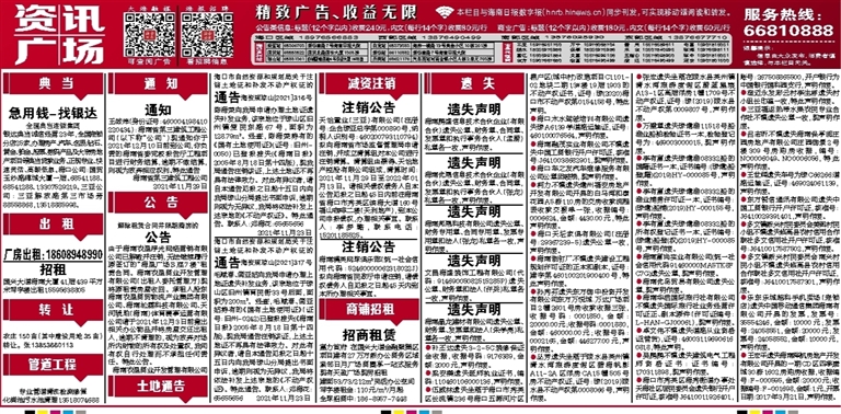 ●伍威林遗失坐落于海口市秀英区长流镇236号海口五源河片区棚户区(城中村)改造项目C1101-02地块二期13#楼19层1903的不动产权证书,证号:琼(2020)海口市不动产权第0154158号,特此声明。