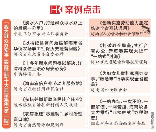 得益于省人社厅创新实施劳动能力鉴定结论全省互认通用,莫裕波免除了舟车劳顿之苦,今年3月委托妻子在海口顺利办理了劳动能力鉴定。“劳动能力鉴定业务全省通办和鉴定结论全省互认通用,还不收任何鉴定费用,值得点赞。”12月1日,莫裕波的妻子对海南日报记者说。
