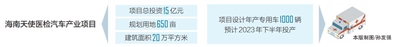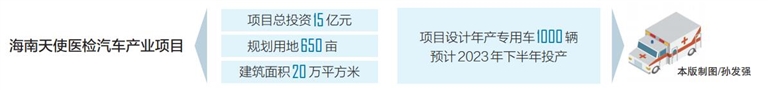 本报万城12月2日电 (记者张惠宁)12月2日,海南天使医检汽车产业项目在万宁破土动工。该项目总投资15亿元,规划用地650亩,建筑面积20万平方米,将立足海南,面向全球市场,设计、制造中国自主知识产权和品牌的医疗专用汽车,还将运用中国先进的5G和AI技术,建立连接每一座医疗用车和数百家国内知名医院的数字医疗云平台,实现跨地域跨空间的医疗诊断。项目设计年产专用车1000辆,预计2023年下半年投产。