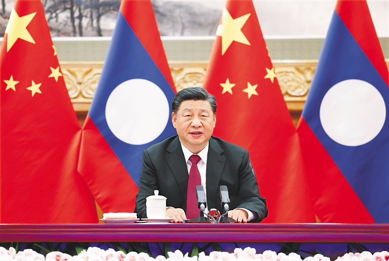 习近平强调,中老都坚持共产党领导和社会主义方向,这是两国关系的本质特征。面对复杂严峻的外部环境以及各自国内艰巨的疫情防控和经济社会发展任务,中老要站在维护社会主义共同事业的政治和战略高度,推动两党两国关系不断迈上新台阶,持续构建牢不可破的中老命运共同体。