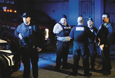 12月4日,在美国底特律,警方聚集在牛津高中枪击案嫌疑人伊森·克伦布利的父母藏匿过的商业大楼附近。
