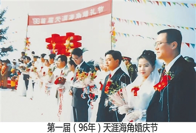 在“朋友圈”看到消息的于泳既惊喜又开心,特地翻出当年的照片。1997年,于泳与妻子张永新“南下”三亚发展,受邀参加那年的天涯海角国际婚庆节。“当年我23岁,现在我的两个孩子都长大了。”张永新感慨,天涯海角国际婚庆节不仅提供了一场难忘的婚礼仪式,也开启了他们新的幸福生活。