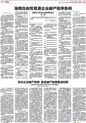 ~~~——《海南自由贸易港企业破产程序条例》解读