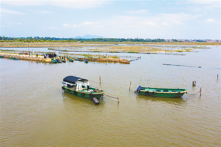 目前,万宁计划投入超1亿元在小海周边种植3000余亩红树林,周家庄村退塘的地方便是红树林种植示范段,已种植了300多亩,并计划在年底前完成1000亩的红树林种植目标。此外,恢复小海历史潮汐通道的南汊道工程也已动工,建成投用后将提高小海的水动力,提升小海纳潮能力。