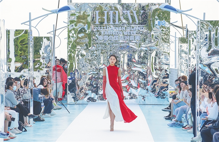 本报三亚12月12日电 (记者徐慧玲)12月12日下午,在三亚湾边,伴着习习海风,2021海南岛国际时装周迎来DRAMAHAUS 2022春夏系列大秀和大方TAIFAR2022春夏系列大秀。时尚走秀T台搬到海边,将潮流和自然完美融合,为观众奉献了一场时尚、浪漫的视觉盛宴。