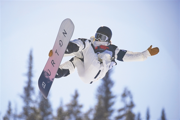 12月11日,2021-2022国际雪联单板滑雪U型场地世界杯美国铜山站比赛落下帷幕,现世界排名第二的中国名将蔡雪桐在女子组决赛中以80.50分的成绩摘得桂冠。图为蔡雪桐在比赛中。 新华社/美联