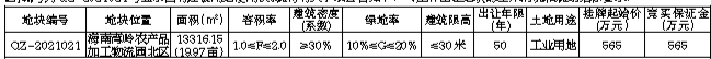 二、竞买申请人资格要求:1、中华人民共和国境内外的法人、自然人和其他组织,除法律另有规定者外,均可以申请参加本次国有建设用地使用权挂牌出让活动。2、竞买申请人须单独申请,本次挂牌出让不接受联合竞买,失信被执行人不得参加本次竞买。具有下列行为的法人和其他组织,不得申请竞买:(1)在海南省内因自身原因造成土地闲置的。(2)在海南省内拖欠土地出让金、违约金、利息等行为的。三、本次国有建设用地使用权挂牌出让设有底价,按照出价最高且不低于底价者得的原则确定竞得人。四、本次挂牌出让的详细资料和具体要求,见挂牌出让文件。申请人可于2021年12月15日至2022年1月12日到海南省公共资源交易服务中心一楼3号窗口或琼中黎族苗族自治县自然资源和规划局自然资源征收与开发利用权益股获取挂牌出让文件,并按挂牌手册要的具体要求报名能加竞买。报名期限:2021年12月15日— 2022年1月12日17:00(以竞买保证金实际到账为准)。五、资格确认:经审查,申请人按规定交纳竞买保证金,具备申请条件的,在2022年1月12日17:30前确认其竞买资格。六、挂牌报价时间及地点:挂牌时间:起始时间:2021年12月31日8:30;截止时间:2022年1月14日15:30。挂牌地点:海南省政府会展楼二楼省公共资源交易服务中心土地交易厅进行。本次竞买活动只接受书面报价,不接受电话、邮寄、电子、口头等其他方式报价。受理报名、报价时间:报名报价期限内上午8:30至11:30 ,下午14:30至17:30(节假日除外)。本公告所指时间均为北京时间。七、其他需要公告的事项:1、该地块项目规划条件必须符合我县所在片区的总体要求和海南湾岭农产品加工物流园园区产业布局规划。地块项目投资强度指标均不低于300万元/亩,年度产值指标均不低于 300万元/亩,年度税收指标均不低于10万元/亩,地块开发约定指标纳入《海南省产业项目发展和用地准入协议》。2、竞得人须当即签订《成交确认书》,并在15日内与海南湾岭农产品加工物流园管理委员会签订《海南省产业项目发展和用地准入协议》,并严格按照协议中约定的内容进行开发建设,否则将承担相关违约责任。在签订《海南省产业项目发展和用地准入协议》后15日内与琼中黎族苗族自治县自然资源和规划局签订《国有建设用地使用权出让合同》,按出让合同约定方式向琼中黎族苗族自治县财政非税收专户付清全部土地成交价款。3、竞买成功后,竞得人交纳的竞买保证金,自动转为出让地块的定金,并可抵作国有建设用地使用权土地成交价款。未竞得人交纳的竞买保证金在挂牌活动结束后,5个工作日内退还,不计利息。4、其他费用缴付:竞得人申请办理用地手续及《不动产权证书》涉及的其他税费按相关规定自行向有关部门支付。5、根据《海南省装配式建筑实施主要环节管理规定(暂行)》,总建筑面积在3万平方米以上或单体建筑面积在2万平方米以上的新建商业、办公等公共建筑项目,具备条件的全部采用装配式方式建造。八、开发建设要求:1、地块须按城乡规划要求进行开发建设。2、开发建设期限:竞得者须在签订《国有建设用地使用权出让合同》之日起180日内动工建设,自动工之日起2年内完成项目的开发建设。如未按期完成计划投资建设和不履行《国有建设用地使用权出让合同》的,经县政府批准后依法收回国有土地使用权。九、本次挂牌出让事项如有变更,届时以变更公告为准。十、本公告未尽事宜详见《琼中黎族苗族自治县国有建设用地使用权挂牌出让手册》,该手册所载内容为本公告的组成部分。十一、查询网址:http://www.landchina.com;http://zw.hainan.gov.cn/ggzy/;http://lr.hainan.gov.cn。十二、咨询方式:联系人:李先生、孔女士。电话:0898-86225309、19989162577。