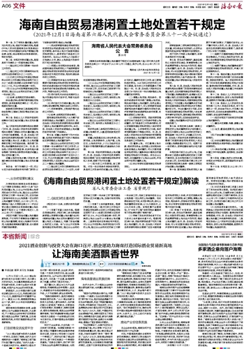 海南自由贸易港闲置土地处置若干规定