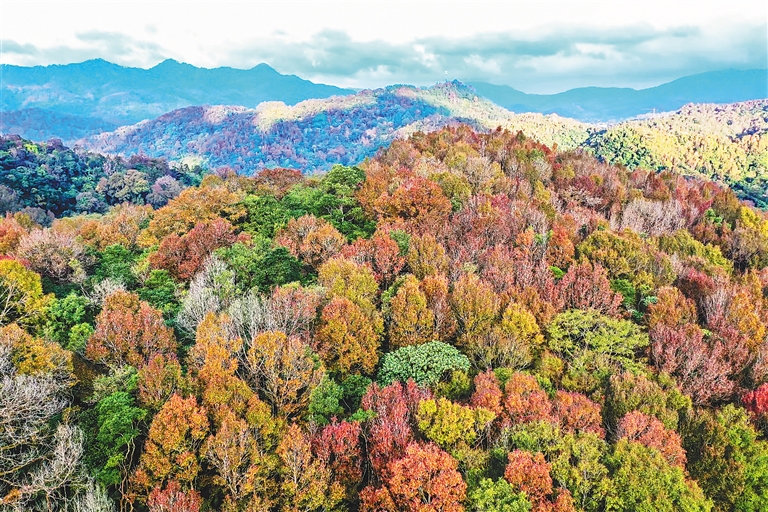 雅宾热带雨林区位于海南热带雨林国家公园五指山片区水满管护站附近,这里海拔地势高,枫叶红得最为靓丽。