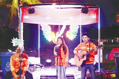 “给我四个桶,保护环境靠大家……”12月9日晚,海口湾欢乐节氛围浓厚,一场别开生面的垃圾分类宣传活动上演。身着橘色环卫工人制服的街头艺人将垃圾分类知识融入演出,让市民在欢乐中了解垃圾分类知识。