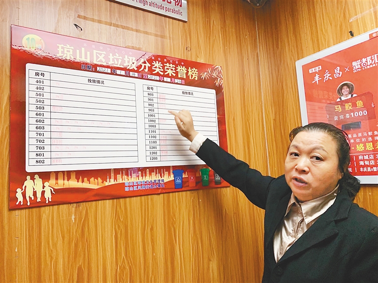 每天下午,在海口琼山区椰海家园小区垃圾房旁,垃圾分类督导员梁春花都要引导小区业主进行垃圾分类投放。当她确认业主全部投放正确后,业主便会拿出一个小圆片在她的刷卡机上刷卡留痕。