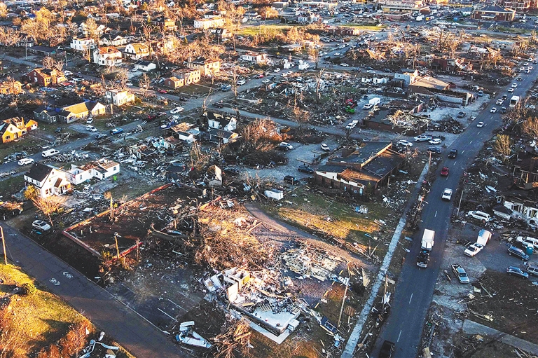 肯塔基州官员13日警告,龙卷风袭击可能导致受灾地停暖、停水或停电数周甚至更久。
