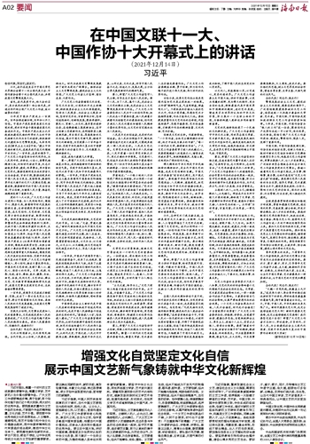 增强文化自觉坚定文化自信 展示中国文艺新气象铸就中华文化新辉煌