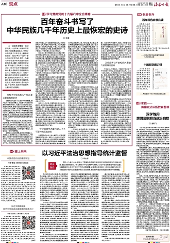 第003版:奋斗百年路 启航新征程 学习贯彻党的十九届六中全会精神
