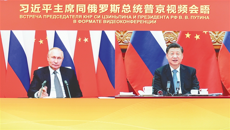 习近平指出,明年,中国共产党将召开二十大,俄罗斯将进入落实《2030年前国家发展目标》的关键时期。双方应该坚持互予共享开放机遇,坚持推动全球发展议程,为建设新型国际关系、构建人类命运共同体发挥作用。