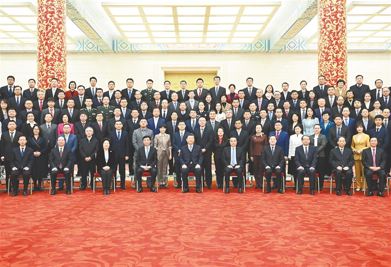 下午3时10分,习近平等来到人民大会堂金色大厅,全场响起热烈掌声。习近平等走到代表们中间,同大家亲切交流并合影留念。