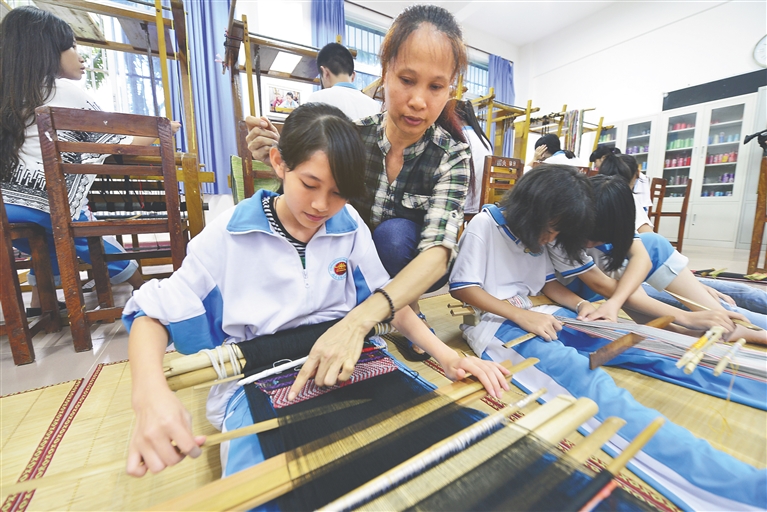 这些年来,陈丹教授过的学生逾千人。“成为‘南海工匠’,让我更有信心传承好黎锦技艺,更有底气为发扬民族文化添一份力。”陈丹感慨道。在日前省委人才发展局组织的对“南海系列”育才计划培养对象进行首次“期中考”中,她顺利通过。