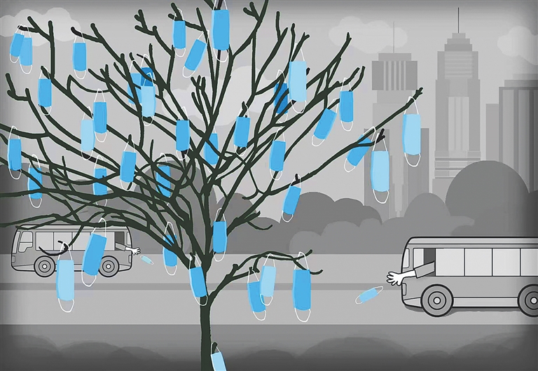 口罩是阻挡病毒传播的利器。随着口罩使用量增多,一些人将用过的口罩随手丢弃,这一问题引起人们的关注。