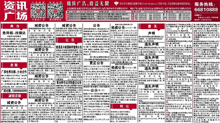 我司于2021年10月10日在《海南日报》A13版刊登了20211210期拍卖公告。现将公告内容做以下更正,其他内容不变:将“于2021年12月16日10时至2021年12月17日10时”更正为“于2021年12月19日10时至2021年12月20日10时”。