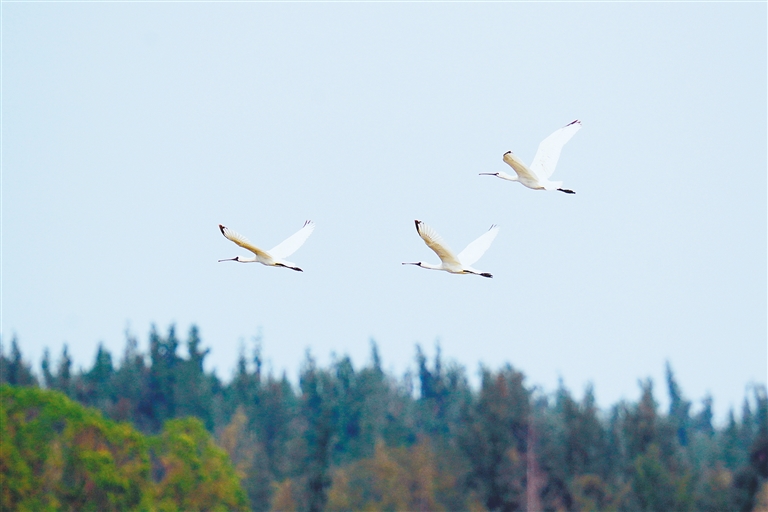 近年来,黑脸琵鹭在海南东寨港、新盈、儋州湾以及东方黑脸琵鹭保护区等湿地区域多次被监测记录到。今年以来,在万宁东澳镇、海尾湿地公园有发现黑脸琵鹭停留的踪迹,这说明这些区域可能有适合他们越冬栖息的生境,黑脸琵鹭在海南的越冬栖息地有望进一步扩大。