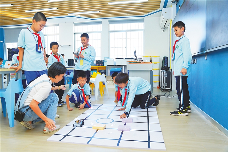 趣编程Scratch基础、趣编程Scratch进阶、3D one三维设计、童心制物机器人、无人机……三亚市实验小学创客教室科技味十足,“多彩信息”社团开展丰富的课后服务课程增强学生们学科学、爱科学的意识,点燃科技梦想,备受学生喜爱。据悉,今年秋季开学以来,三亚市实验小学将落实“双减”政策与创客课程和人工智能教育课程的建设相结合,搭建学习平台,开设包括“多彩信息”社团在内的近50个社团,提供科学、音乐、舞蹈等形式多样的特色课后服务课程。